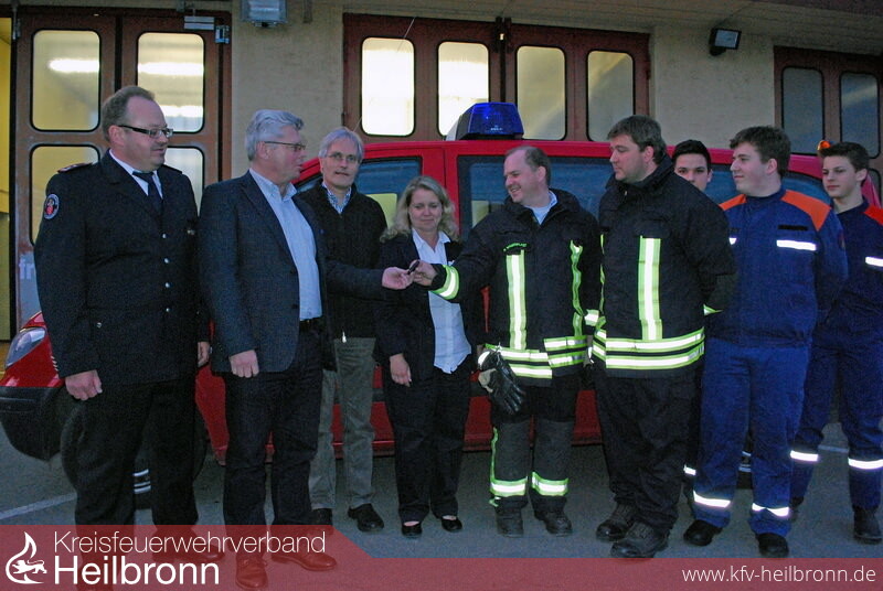 Nachdem der zum MTW umgebaute VW LT, das ehemalige TSF der Abteilung Niederhofen; vor mehr als zwei Jahren kaputt gegangen war, musste die Jugendfeuerwehr Schwaigern bis jetzt auf Ersatz warten. Feuerwehrkommandant Jürgen Kachel konnte jetzt den Schlüssel für das Nachfolgefahrzeug an Jugendfeuerwehrwart Michael Wagenplast übergeben. Besonders stolz ist Kachel, dass das Feuerzeug durch Spenden und somit ohne Belastung des städtischen Haushalts finanziert werden konnte