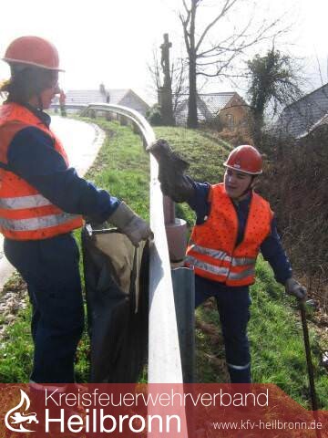 Morgens um 9 Uhr trafen sich alle Beteiligten im Bauhof Neudenau, um die Wegrouten auszumachen. Die Jäger hatten bereits im Vorfeld erkundet, wo viel Müll an den Weg- und Straßenrändern liegt; so konnte man sich gezielt auf den Weg machen. Während die Jugendlichen der Feuerwehr vornehmlich auf den Hauptstraßen unterwegs waren - abgesichert durch Feuerwehrfahrzeuge - gingen die Jäger vor allem auf den Feldwegen und im Wald auf die Suche nach dem Müll.