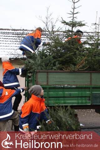 Die grünen Tannen haben ihren Dienst getan: 22 Helfer der Jugendfeuerwehr haben in Bonfeld mit großem Eifer am Samstag Christbäume eingesammelt. In Heinsheim, Bad Rappenau und Siegelsbach taten es ihnen die Kameraden gleich. In anderen Orten im Kraichgau übernahmen andere Vereine diese Aufgabe. Die Bonfelder Merlin und Benedikt sind dabei schon alte Hasen: "Die Leute sind durchweg freundlich, die Spendenbereitschaft ist groß und oft bekommen wir von den Leuten neben der Spende auch noch etwas zu Trinken oder zu Essen hingestellt", erzählen die beiden Teenager. Merlin hat mit einem alten Signalhorn den Sammeltrupp angekündigt. "Das haben wir schon zu meiner Zeit bei der Jugendfeuerwehr so gemacht", erinnert sich Abteilungskommandant Frank Rieth.