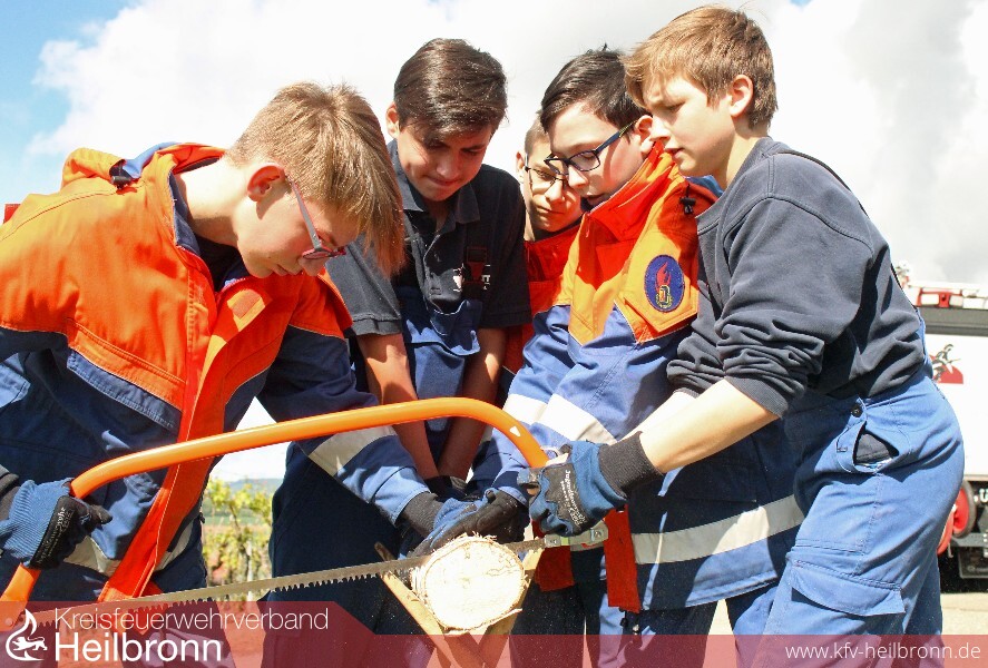 Kraftvoll ziehen Manuel Föll und Sebastian Thiele aus Abstatt die Handsäge hin und her. Die scharfen Zähne des metallenen Blatts fressen sich Zentimeter um Zentimeter in den aufgelegten Birkenstamm. Ihre Teamkollegen Jonas Dörner, Fabian Royeck und Dennis Härle halten den Ast gut fest. Und so ist das Holzstück in Windeseile geteilt. Doch wiegt es auch die 300 Gramm, die die Wettkampf-Richtlinie vorgibt? Die bereitgestellte Küchenwaage wird es zeigen. 25 Jahre ist die Neckarwestheimer Jugendfeuerwehr jung. Und zu diesem Jubiläum haben die Floriansjünger um Jugendwart Robin Scheithauer einen Stationenlauf organisiert, bei dem am Samstag insgesamt fünf Jugendfeuerwehr-Teams ihre Kräfte und Geschicklichkeit messen. Die Jugendfeuerwehr aus Neckarwestheim hatte die Aufgaben im Vorfeld bereits getestet und half deshalb an den verschiedenen Stationen mit.