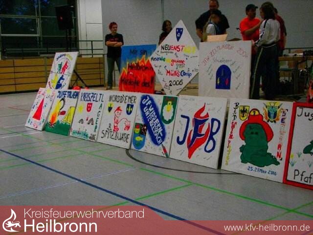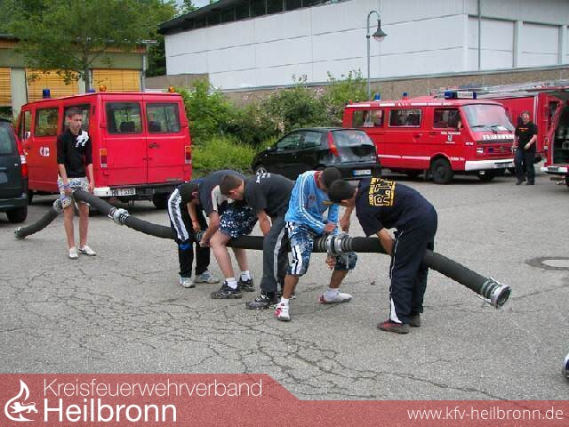 Beim Zeltlager der Kreisjugendfeuer in Schwaigern stand der Samstag im Zeichen der Lagerolympiade. In 16 verschiedenen Disziplinen mussten sich 30 Gruppen auszeichnen. Die Gruppen waren bunt aus den Teilnehmer der einzelnen Jugendfeuerwehren zusammengestellt. Schlauchkegeln oder das zusammenkuppeln eines Rings aus Saugschläuchen, das löschen eines brennenden Modellhauses waren noch feuerwehrbezogen. Aber auch 4er-Sackhüpfen oder die Suche im berühmten Heuhaufen gehörten zu den Aufgaben.