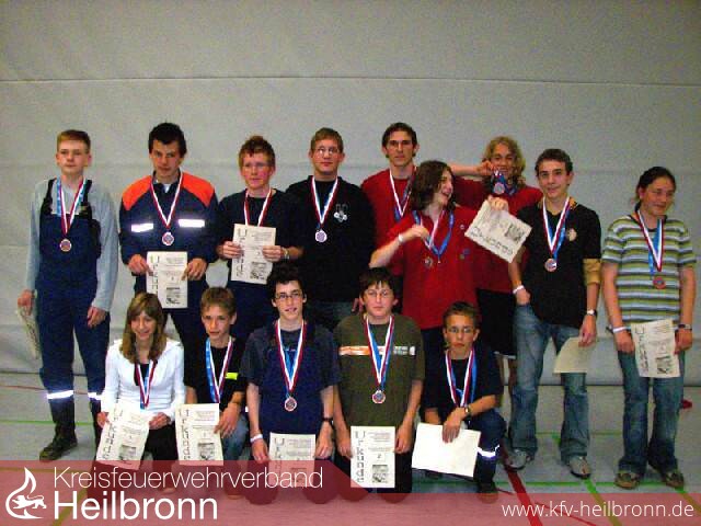 Alle Gruppen konnten die Aufgaben mit Bravour lösen, so dass Kreisjugendfeuerwehrwart Knut Steinbauer bei der Siegerehrung am Abend allen Teilnehmern Urkunden überreichen konnte. Sieger wurde die Gruppe mit: Martina Kercher - Offenau, Henrik Ovel - Neckarsulm, Florian Weidlich - Gemmingen, Max Wieland - Heilbronn und Pascal Wilrett - Brackenheim.
