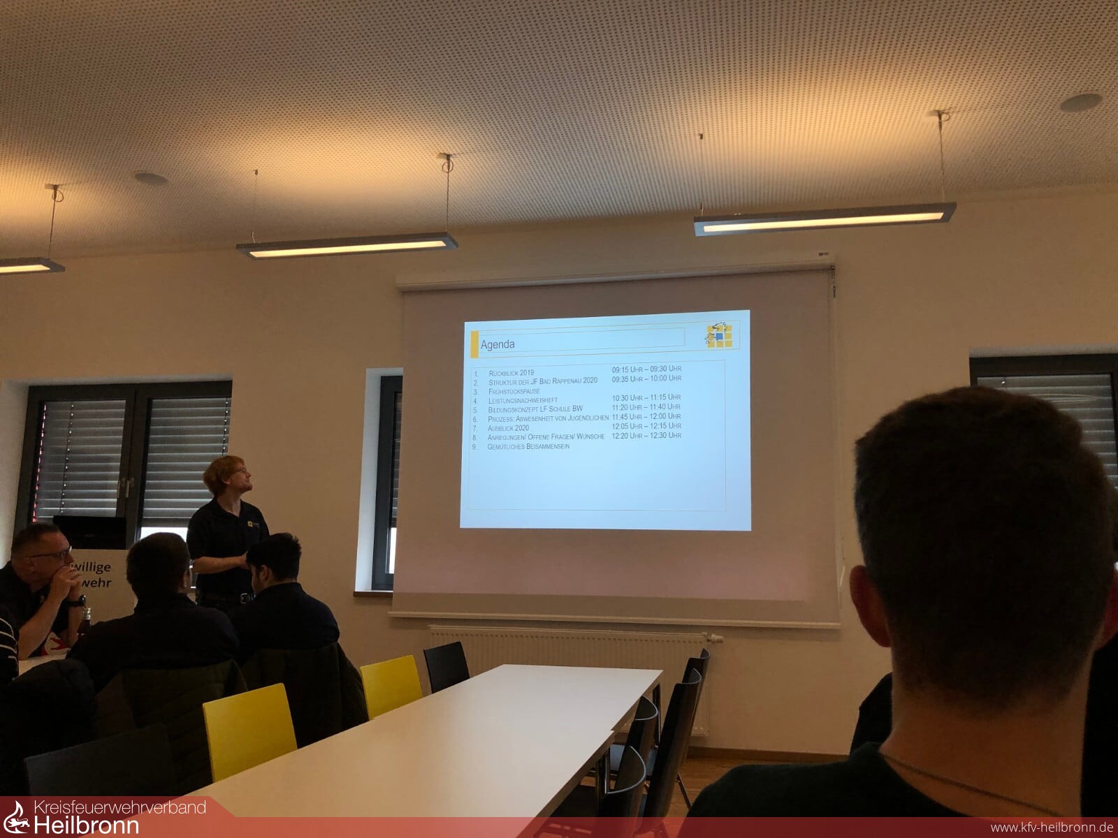 Zunächst wurde in einem Rückblick aufgezeigt, welche Aktivitäten die Jugendfeuerwehr Bad Rappenau im Jahr 2019 absolviert hat uns positive wie negative Aspekte herausgearbeitet. Insgesamt war das vergangene Jahr geprägt von der Umstrukturierung der Jugendarbeit zum Ressortmodell. So fanden hierzu zahlreiche Sitzungen von Arbeitsgruppen, eine Klausurtagung zur Vorstellung finaler Ergebnisse und eine Kurzinformation der Jugendlichen im Rahmen der gemeinsamen Weihnachtsfeier an. Anschließend wurde nochmals die aktuelle der Jugendfeuerwehr und die Zusammensetzung des Jugendfeuerwehrausschusses aufgezeigt. Im weiteren Verlauf wurde das Thema Bildung innerhalb der Jugendfeuerwehr betrachtet. Hierzu wurde zunächst das Bildungskonzept der Landesfeuerwehrschule Baden-Württemberg für Jugendfeuerwehren besprochen. Im Anschluss daran stellte Patrick Söhner (Abt. Süd) den anhand der Jugendordnung erarbeiteten Lernzielkatalog der Jugendfeuerwehr Bad Rappenau und das hieraus resultierende Ausbildungsheft vor. Es wurden inhaltliche Schwerpunkte, die Vorgehensweise beim Ausfüllen und mögliche Konzepte zur thematischen Ausgestaltung von Übungen besprochen. Nach einer kleinen Pause mit Weißwurstfrühstück und regem Austausch unter den Betreuern, wurde ein einheitlicher Prozess zur An- und Abmeldung von Jugendlichen und die Vorgehensweise bei mehrmaligem Fehlen präsentiert und diskutiert.