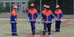 Um 12.30 Uhr begannen weitere 4 Jugendfeuerwehren, mit insgesamt 9 Mannschaften, ihre Abnahme der Jugendflamme.
