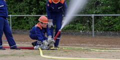 Alle Mannschaften absolvierten die Stationen Weitsprung, 400-Meter-Lauf, Hindernisparcours und Feuerwehrwissen. An der Station Feuerwehrtechnik entschied das Los darüber, ob die kleine Wasserkanone, ein Schaumangriff oder der Aufbau Wasser über Graben gezeigt werden musste.