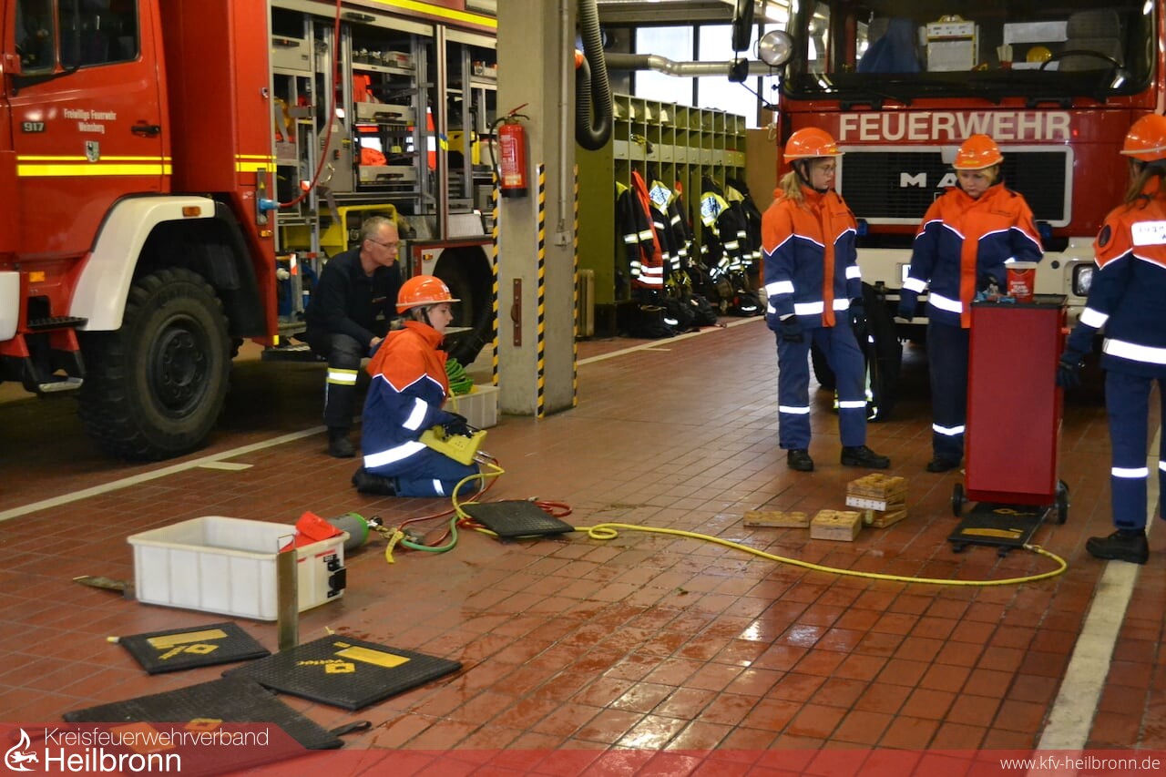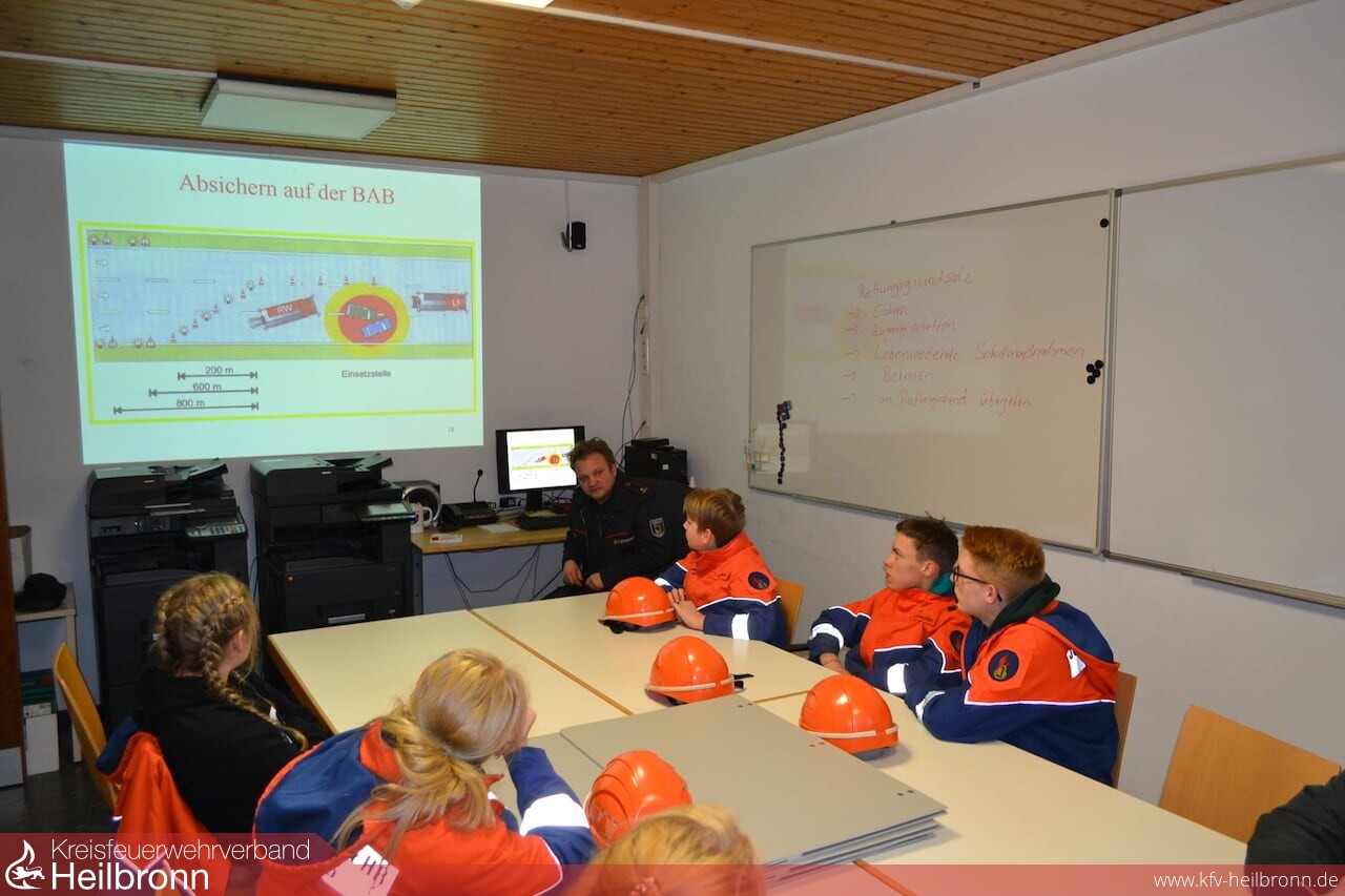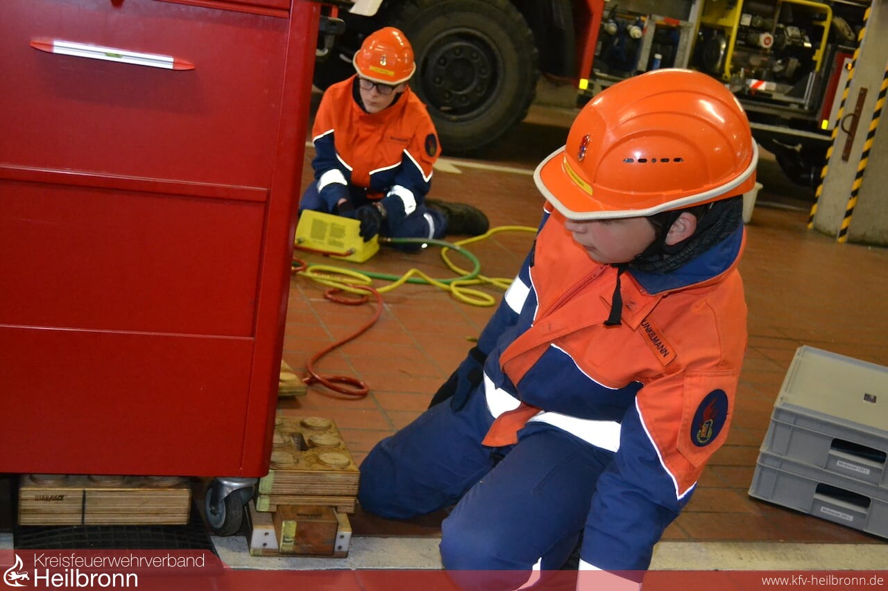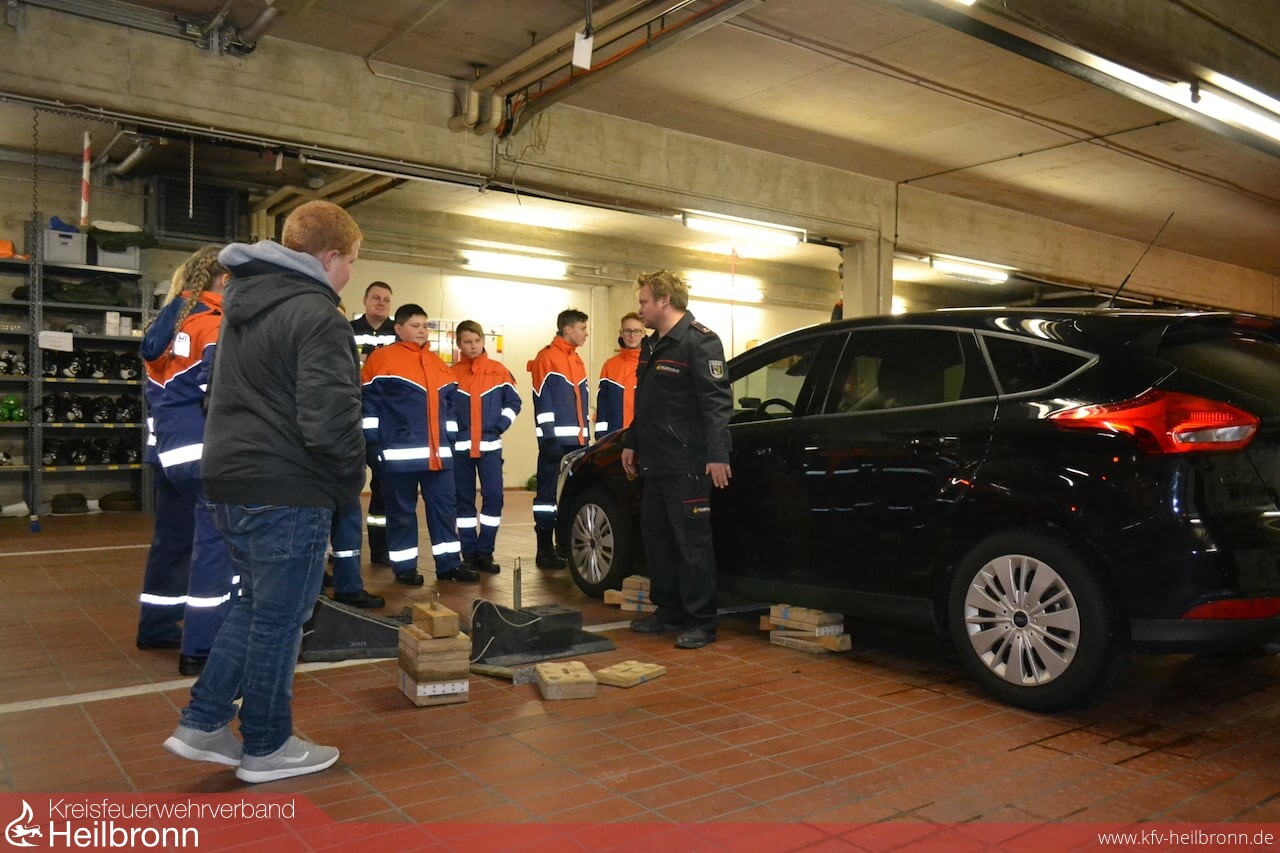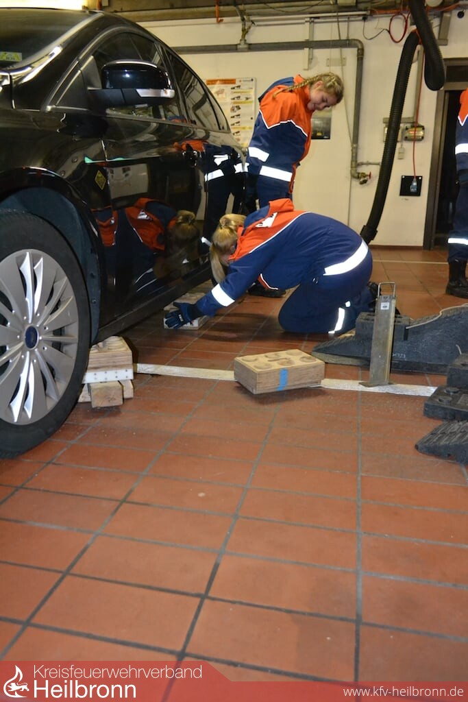 Der Dienst richtete sich speziell an die älteren Jugendlichen. Beim ersten Übungsdienst referierte Heiko Frank, Abteilungskommandant und Ausbilder für Technische Hilfe, zum Thema „Unterbauen“. Das fachgerechte Unterbauen wird angewendet um verunfallte Fahrzeuge gegen das ungewollte Einfedern, beim Retten oder Versorgen von Insassen, abzusichern.