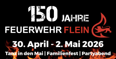 150 Jahre Feuerwehr Flein – Jubiläumsfest in der Sandberghalle Flein vom 30.04. bis 02.05.2026.