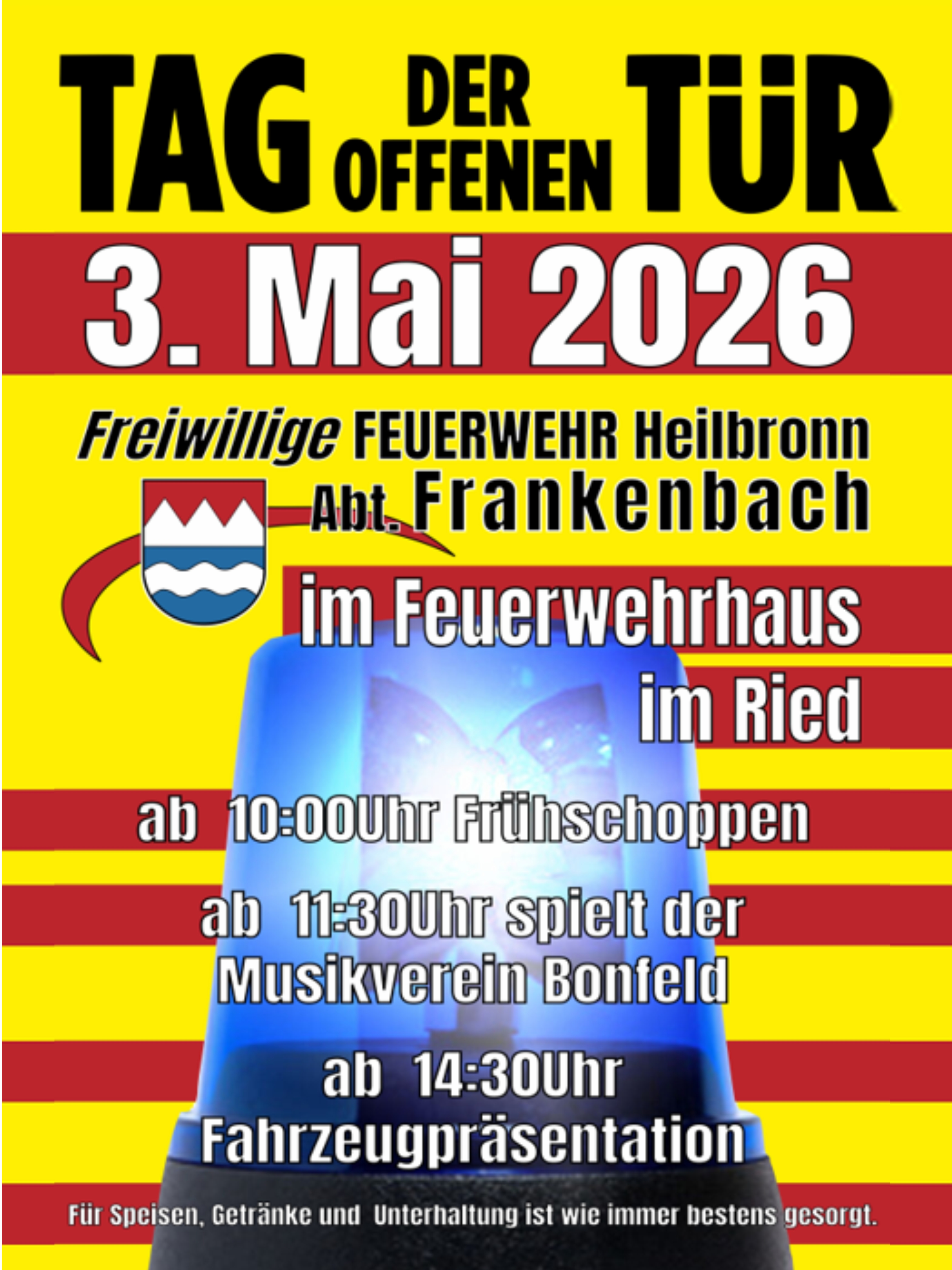 Am Sonntag, 3. Mai öffnet die Freiwillige Feuerwehr Heilbronn, Abteilung Frankenbach ihre Türen für die Bevölkerung.