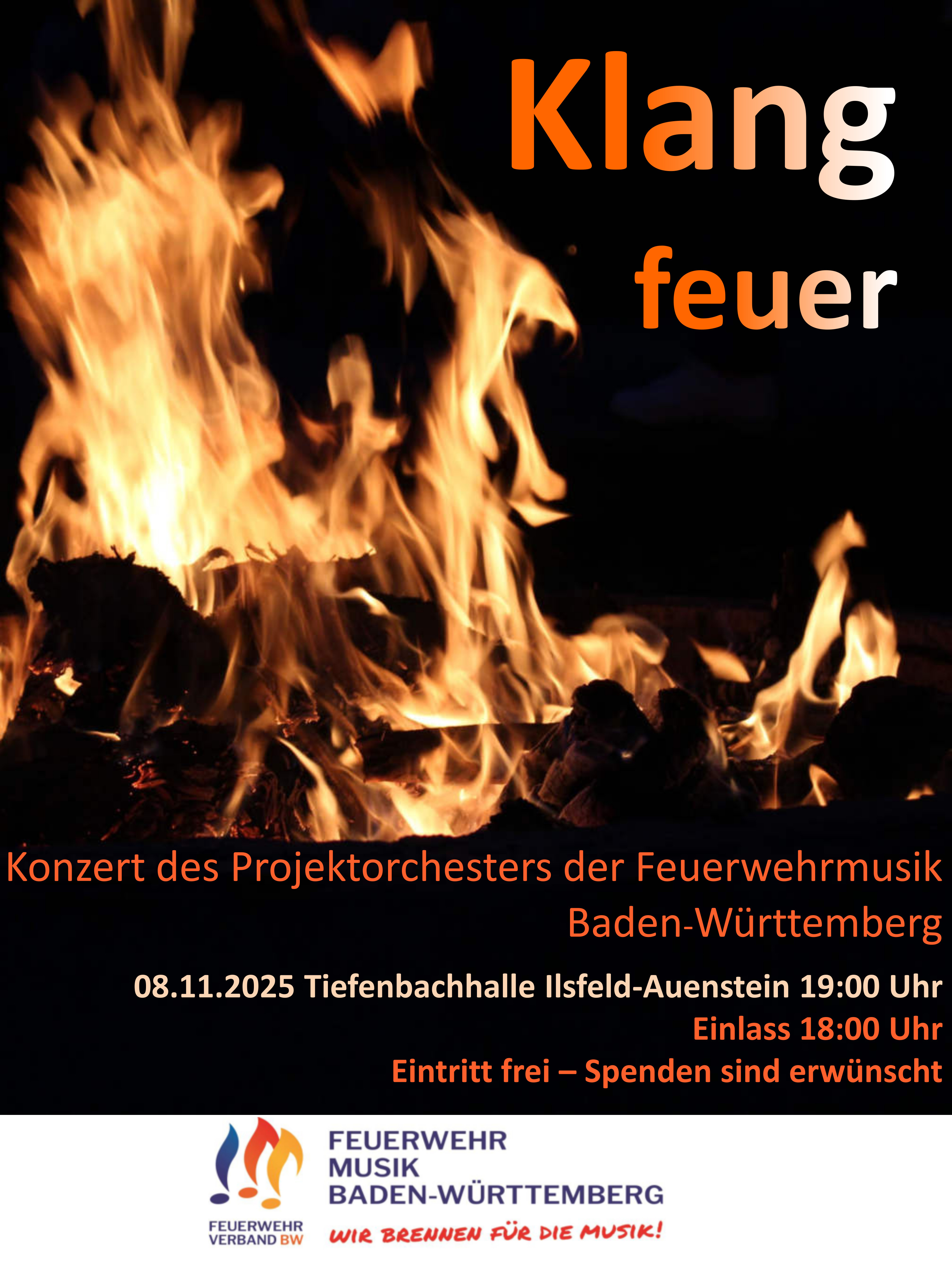 Am 8. November ist es wieder so weit: das Projektorchester Klangfeuer tritt auf - diesmal in der Tiefenbachhalle Ilsfeld-Auenstein (Am Ochsenweg 1 in Ilsfeld-Auenstein). Etwa 90 Musikerinnen und Musiker aus ganz Baden-Württemberg werden beim Konzert auf der Bühne zu sehen und zu hören sein. Gemeinsame Auftritte bei Massenchören, Zusammenspiel mit örtlichen Musikvereinen und Blasorchestern - das Konzert soll zeigen, was möglich ist.
