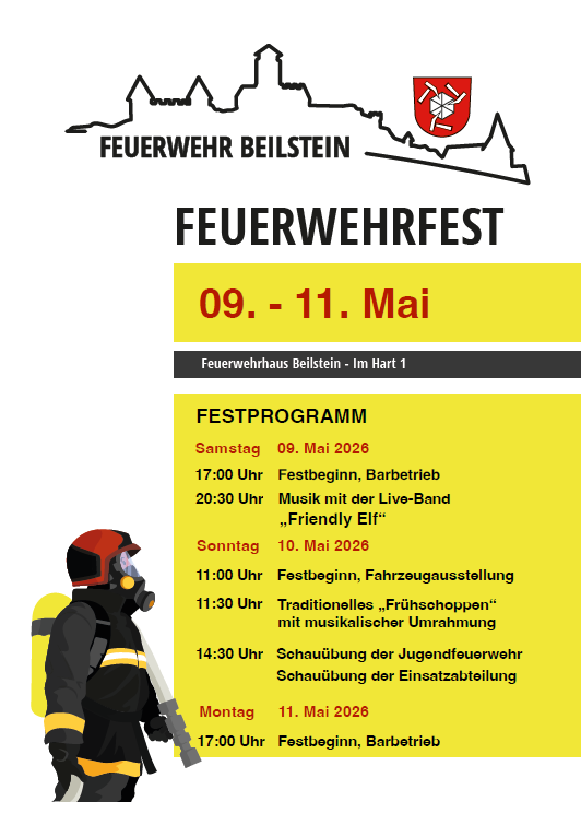 Endlich ist es wieder so weit. Die Freiwillige Feuerwehr Beilstein veranstaltet ihr allseits beliebtes Feuerwehrfest.