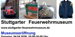 Hallo und guten Tag, das Stuttgarter Feuerwehrmuseum eröffnet traditionell am 1. Aprilwochende die diesjährige Museumssaison. Samstag 04.04.2026 von 10:00-16:00 Aufgrund des großen Erfolges wird unsere Sonderausstellung "Playmobil-Eine Blaulichtfamilie"…