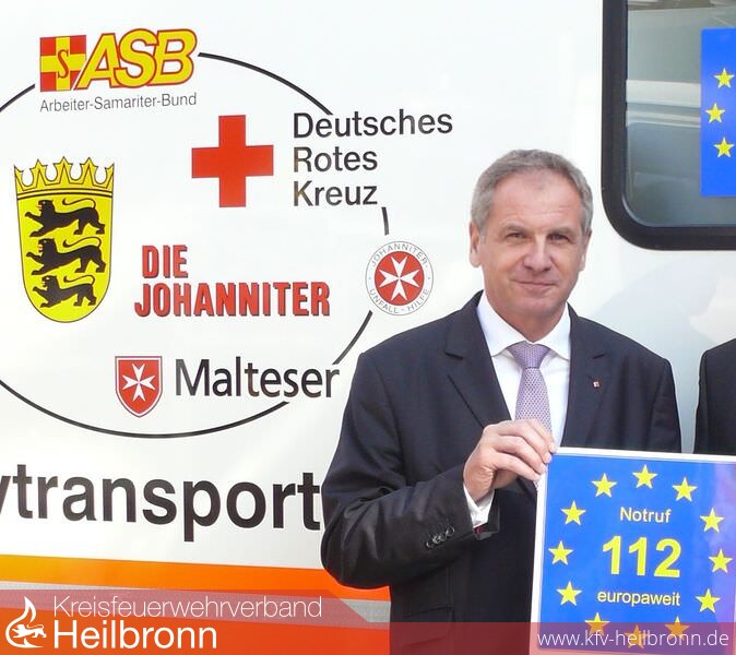 Um den Euronotruf bekannter zu machen, hat Innenminister Gall die Schirmherrschaft für das Projekt „112 - Feuerwehren und Rettungsdienste denken europäisch“ übernommen, das vom Europa Zentrum Baden-Württemberg und dem Europe Direct Informationszentrum Stuttgart in Baden-Württemberg durchgeführt wird. Ziel der Aktion ist es, dass Feuerwehren und Rettungsdienst sich aktiv für die Bewerbung der europaweiten Gültigkeit des Notrufes 112 einsetzen. Eine gute Möglichkeit sei es, die Fahrzeuge mit dem blau-gelben Logo des Euronotrufs zu bekleben und dies auch der Öffentlichkeit vorzustellen, so der Innenminister. Die mit der Berufsfeuerwehr der Landeshauptstadt, der Flughafenfeuerwehr Stuttgart, einzelnen Freiwilligen Feuerwehren und dem DRK-Kreisverband Stuttgart durchgeführten Pilotphase sei erfolgreich verlaufen. Dort werde jetzt durch die „Notruf-112-europaweit“-Beklebung jeden Tag und bei jeder Einsatzfahrt der Feuerwehr oder des DRK-Kreisverbandes für die europaweite Gültigkeit des Notrufs 112 geworben.