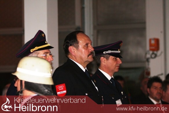 Natürlich waren alle gekommen, die im Audiwerk Neckarsulm Verantwortung tragen. Werkleiter Reimold, Betriebsratsvorsitzender Rank, Abteilungsleiter, Kolleginnen und Kollegen aus dem Bereich Werkssicherheit und berufliche Weggefährten. Ebenso stark allerdings die Vertreter der Feuerwehren. Der Vizepräsident des Deutschen Feuerwehrverbandes Behrendt, Landesbranddirektor Hermann Schröder, Verbandsvorsitzender Reinhold Gall, der auch den Baden-Württembergischen Feuerwehrverband vertrat, die stellvertretenden Vorsitzenden Eberhard Jochim und Albert Decker und weitere Vertreter unseres Verbandes und Kommandanten aus dem Verbandsgebiet.
