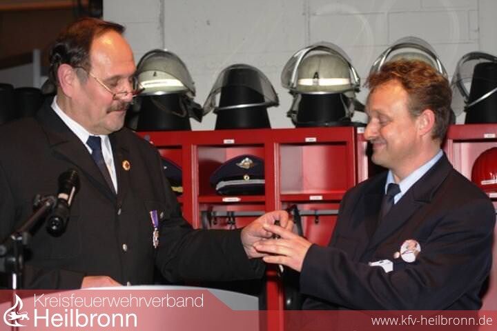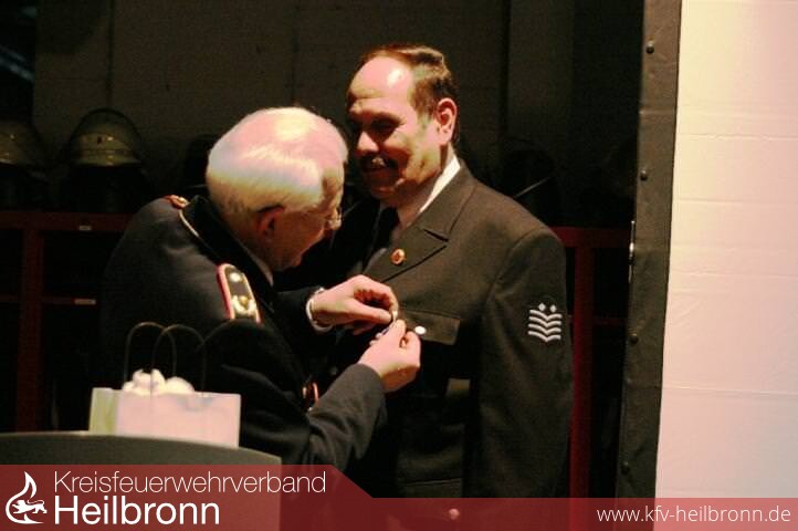 Für sein Wirken als Vertreter der Werkfeuerwehren innerhalb des Kreisfeuerwehrverbandes heftete der Verbandsvorsitzende dem scheidenden Werkfeuerwehrchef die Ehrennadel für besondere Verdienste im Feuerwehrwesen ans Revers. Der KFV bringe hiermit seine Hochachtung für das Wirken und die Wertschätzung für die Person Manfred Mezger zum Ausdruck. Vizepräsident Behrendt, der auch die Werkfeuerwehren im Lande vertrat, würdigte die Leistungen und das Engagement des zukünftigen Ruheständlers, innerhalb der Arbeitsgemeinschaft der Werkfeuerwehren, mit dem deutschen Feuerwehrehrenkreuz in Silber.