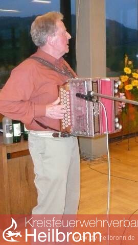 Zwischen den Programmpunkten begleitete und unterhielt Wilmut Kühner, Mitglied der FF Schwaigern auf dem Akkordeon. Seine flotten Rhythmen trugen zur guten Laune der Alterskameraden bei, die genügend Gelegenheit hatten sich im Gespräch auszutauschen.