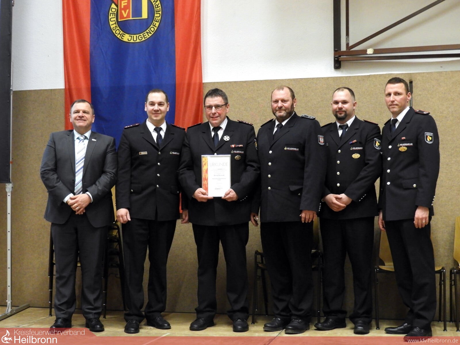 Bei der Jahreshauptversammlung der Freiwilligen Feuerwehr Eppingen wurde Bernd Reimold mit dem „Deutschen Feuerwehr-Ehrenkreuz„ in Gold geehrt. Der stellvertretende Kreisbrandmeister Heiner Schiefer würdige in seiner Laudatio die Verdienste von Reimold. Neben seiner 30 jährigen Funktion als Kommandant der Feuerwehrabteilung Mühlbach war er auch lange Jahre 2. stellvertretender - und 1. stellvertretender Kommandant der Eppinger Wehr. Mit seiner ruhigen und ausgeglichen Art war er immer ein tragender Pol in der Wehr.