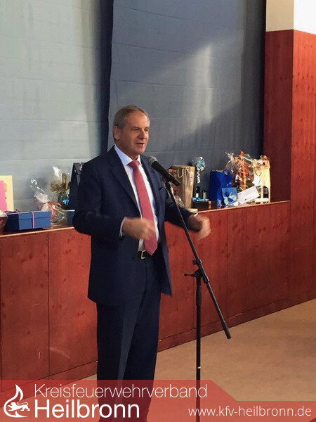 Gestern feierte der Vorsitzende des Kreisfeuerwehrverbandes Heilbronn seinen sechzigsten Geburtstag. Seiner Einladung in die Gemeindehalle in Obersulm Sülzbach waren neben zahlreichen Vertretern aus der Politik auch eine stattliche Anzahl Feuerwehrführungskräfte aus dem Stadt- und Landkreis gefolgt, um ihm persönlich zu gratulieren. Aber auch hochrangige Feuerwehrvertreter aus dem Land hatten den Weg nach Obersulm gefunden: Landesbranddirektor Dr. Karsten Homrighausen, der frühere Landesbranddirektor und heute Leiter des Amtes „Krisenmanagement und Bevölkerungsschutz“ im Innenministerium, Ministerialdirigent Hermann Schröder. Der Vorsitzende des Landesfeuerwehrverbandes und Leiter der Stuttgarter Feuerwehr Stadtdirektor Dr. Frank Knödler sowie der Geschäftsführer des Landesfeuerverbandes Willi Dongus.