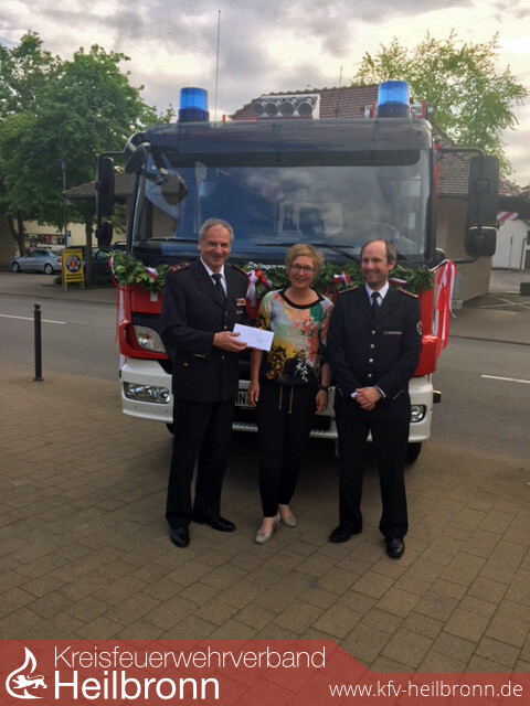 Die Übergabe zweier Fahrzeuge, ein LF 20 und ein KdoW, an die Feuerwehr Gundelsheim boten einen schönen Rahmen für die Übergabe einer Spende an die Anton -Peceroni-Kameradschaftshilfe.