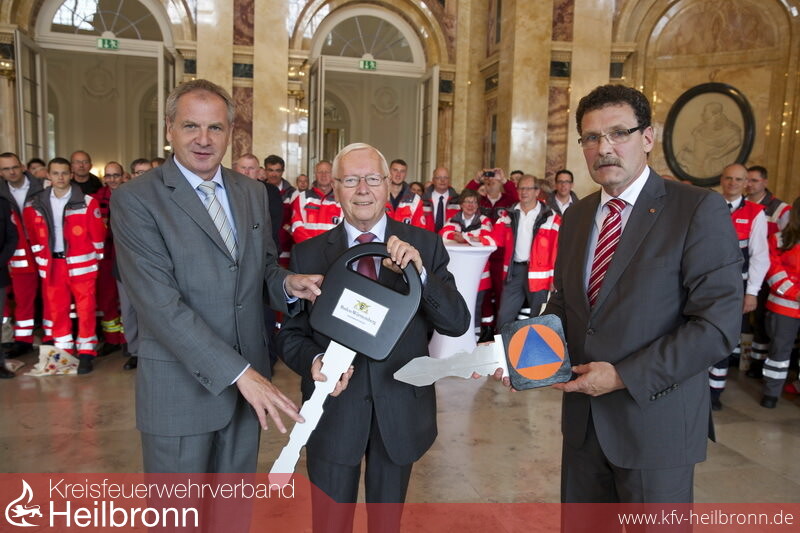 Innenminister Reinhold Gall hat am Samstag, 27. Juni 2015, im Ehrenhof des Neuen Schlosses in Stuttgart eine Auswahl neuer Fahrzeuge und Geräte an die im Katastrophenschutz des Landes mitwirkenden Hilfsorganisationen und Feuerwehren übergeben. Gemeinsam mit dem Präsidenten des Bundesamtes für Bevölkerungsschutz und Katastrophenhilfe, Christoph Unger, hieß der Minister alle Helferinnen und Helfer willkommen und dankte ihnen für ihr Engagement im Bevölkerungsschutz. „Es ist gerade das ehrenamtliche Engagement in den Hilfsorganisationen und bei den Feuerwehren, das den Bevölkerungsschutz trägt und ohne das der Schutz der Bevölkerung bei großen Schadenslagen oder gar Katastrophen nicht funktionieren würde“, sagte Gall.