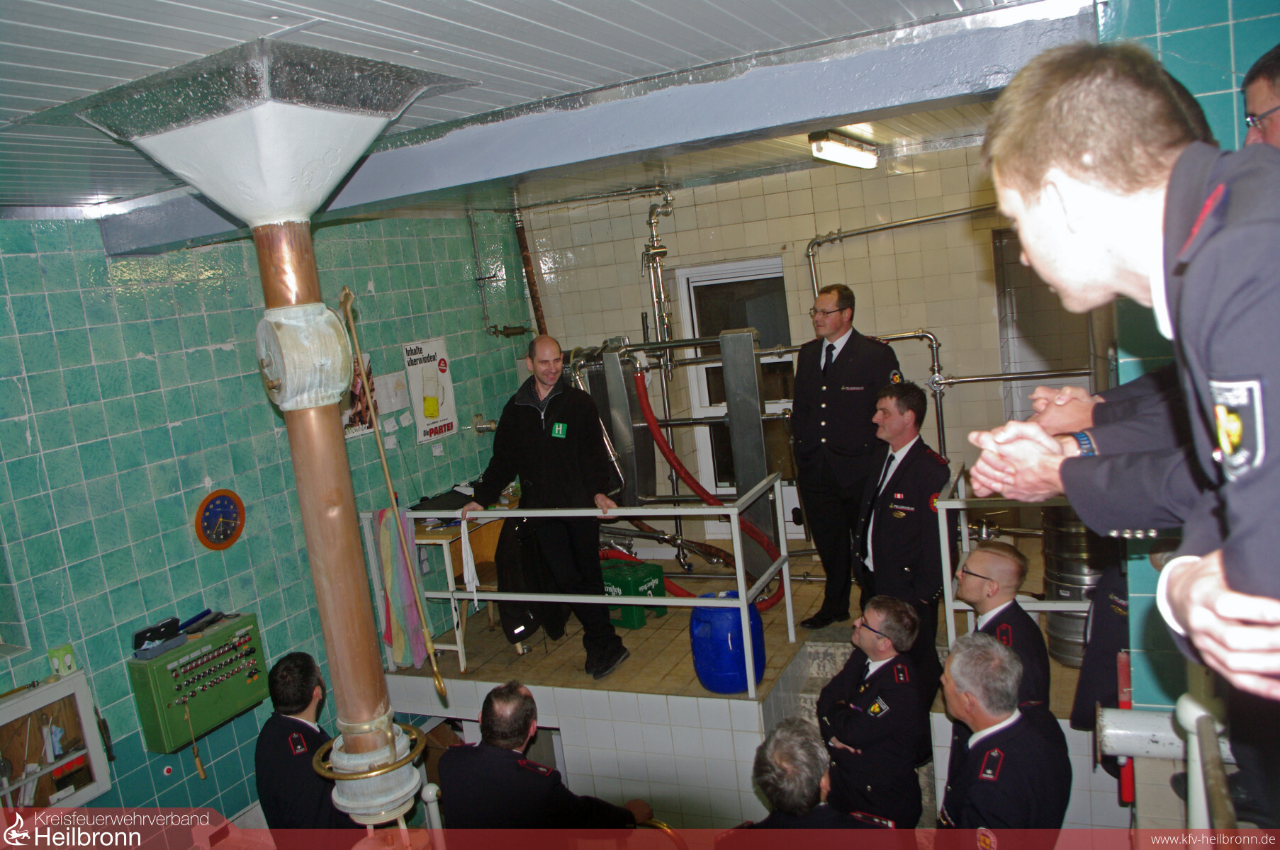 Bevor jedoch mit dem Hauptpunkt Wahlen gestartet wurde, führte der stellvertretende Bad Rappenauer Feuerwehrkommandant Thomas Wachno, seines Zeichens Braumeister bei Häffner Bräu, noch durch die Brauerei und erläuterte dabei den Brauprozess von Bier in seinen unterschiedlichsten Geschmacksvarianten.