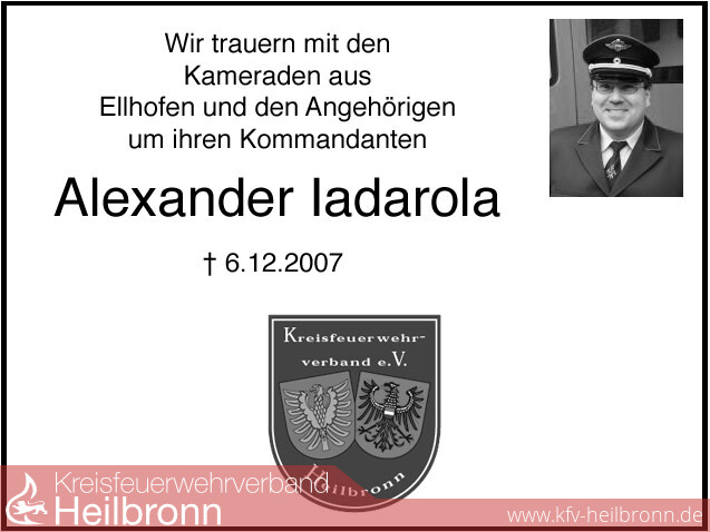 Der Kreisfeuerwehrverband Heilbronn trauert mit den Kameraden aus Ellhofen und den Angehörigen um